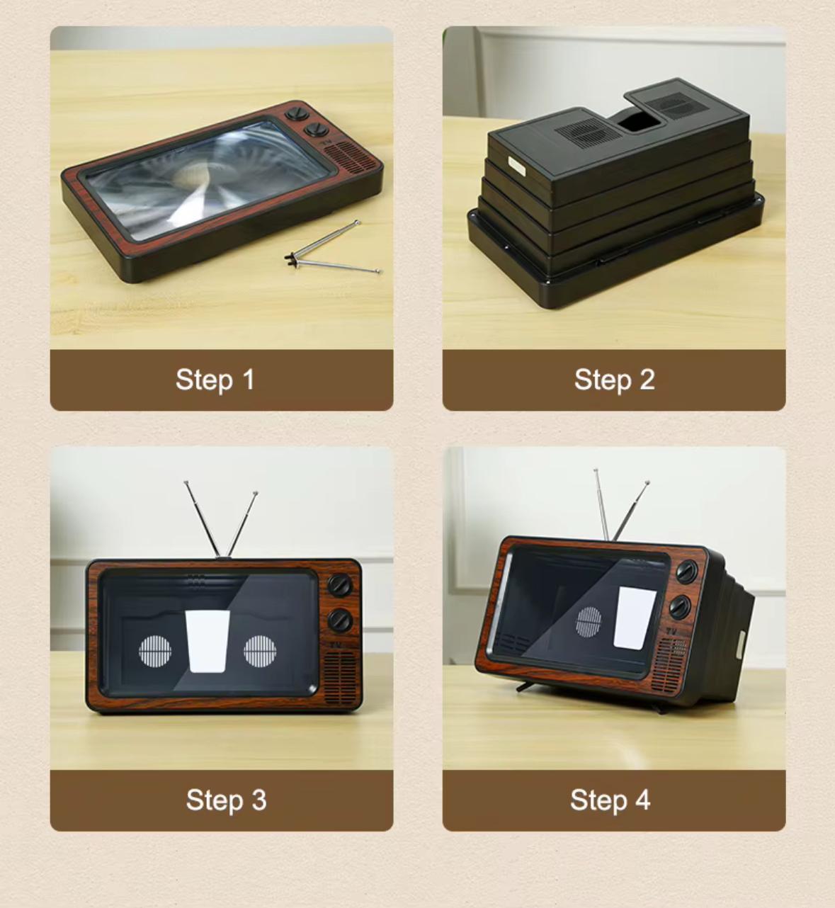 Con este amplificador de pantalla retro estilo TV, mirá tus series y películas favoritas con una experiencia visual ampliada y cómoda, sin forzar la vista.