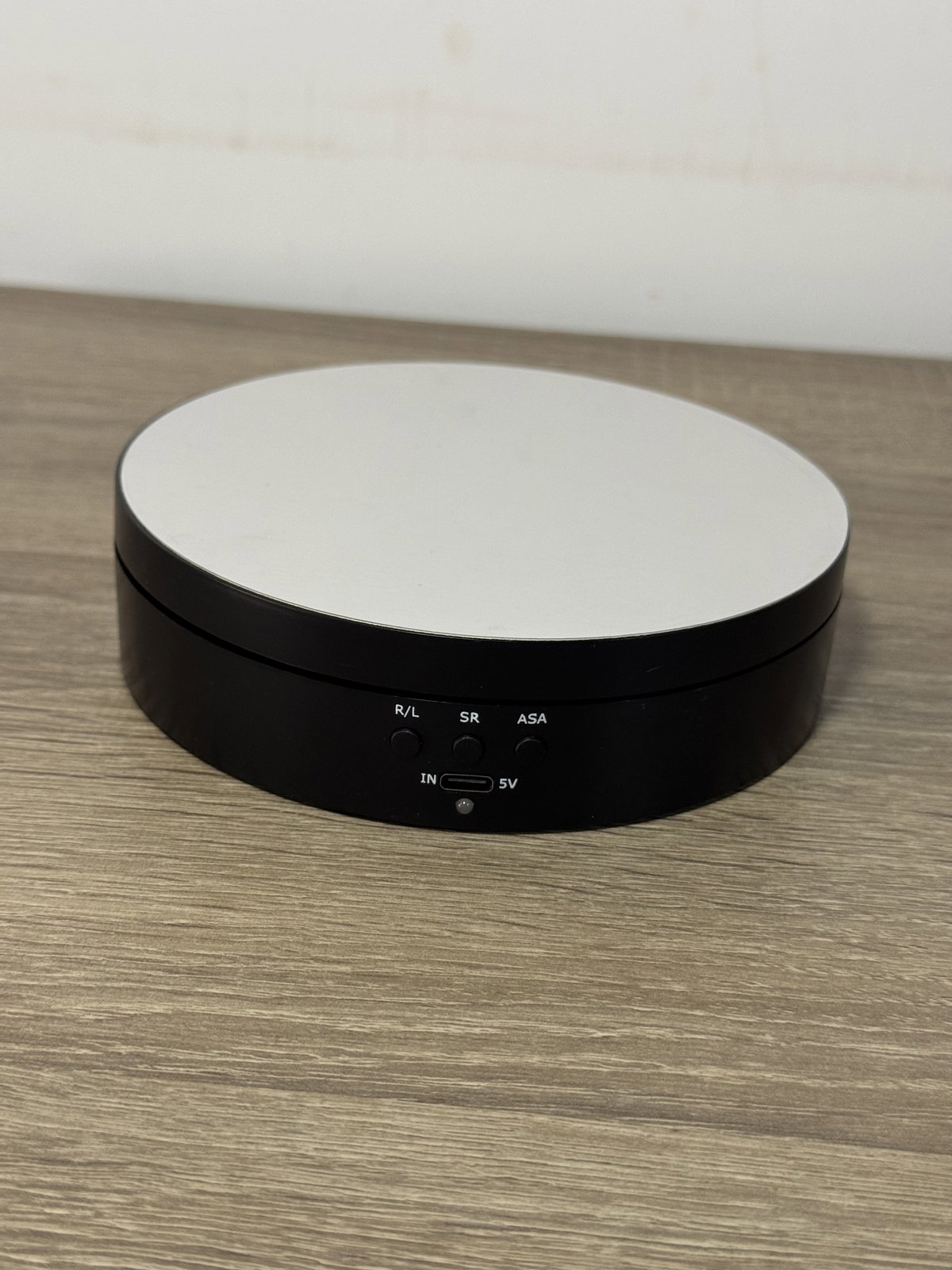 Base giratoria para exhibir productos, funciona con cargador USB-C o con pilas