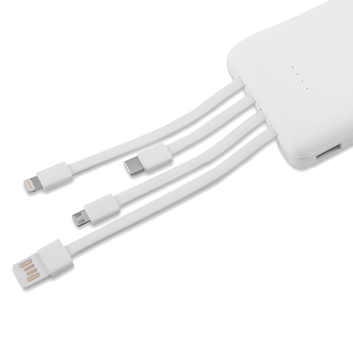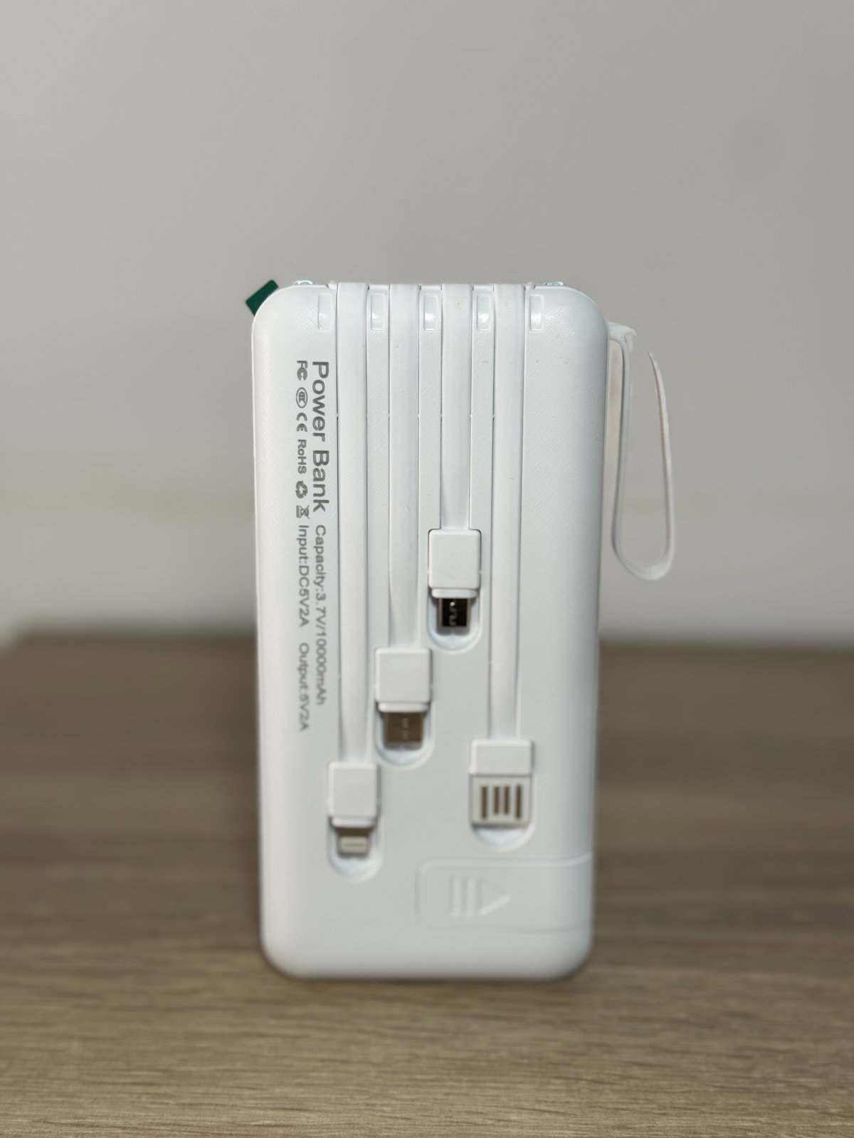 Incluye cables incorporados y varios puertos de salida, permitiéndote cargar varios dispositivos al mismo tiempo.