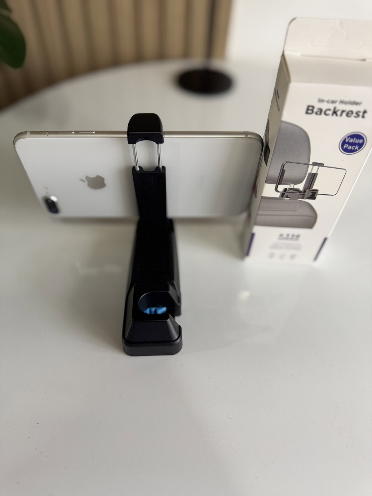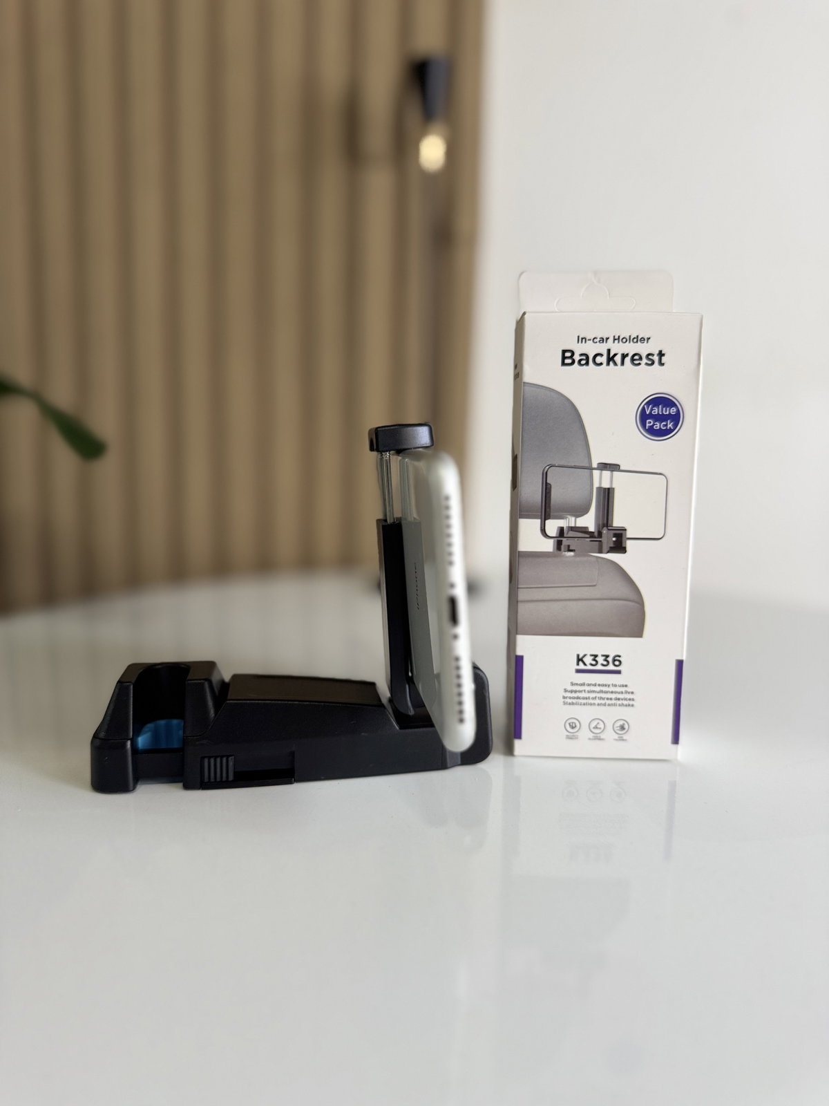 Práctico soporte ajustable que se coloca en el apoyacabezas del auto, ideal para que los pasajeros disfruten de películas, videos o videojuegos durante el viaje. Compatible con la mayoría de celulares y tablets, ofrece sujeción firme y segura, evitando movimientos o caídas. Fácil de instalar y quitar, compacto y resistente.