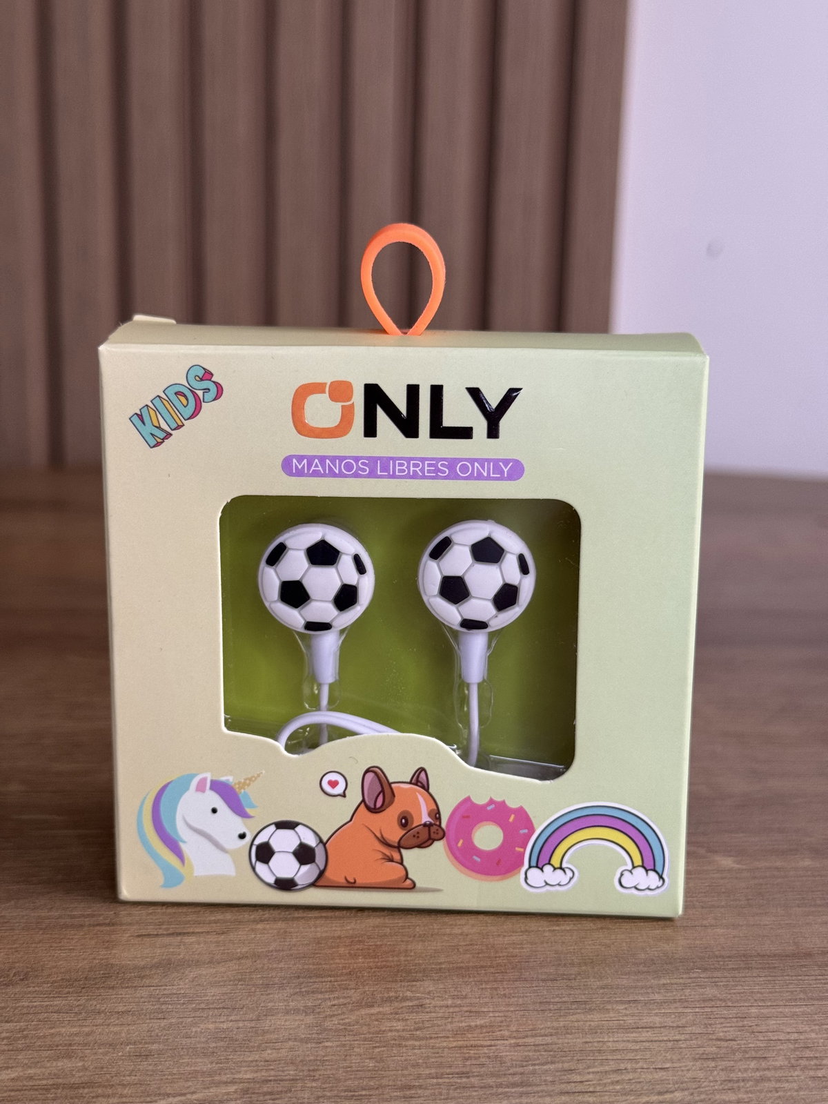 Auriculares manos libres pensados para chicos, con divertido diseño de pelotas de fútbol. Ideales para escuchar música, ver videos o jugar sin molestar a los demás. Con conector 3.5 mm, cómodos, livianos y compatibles con celular, tablet, notebook o consola portátil.
