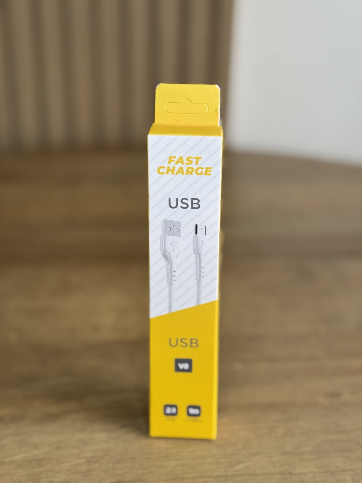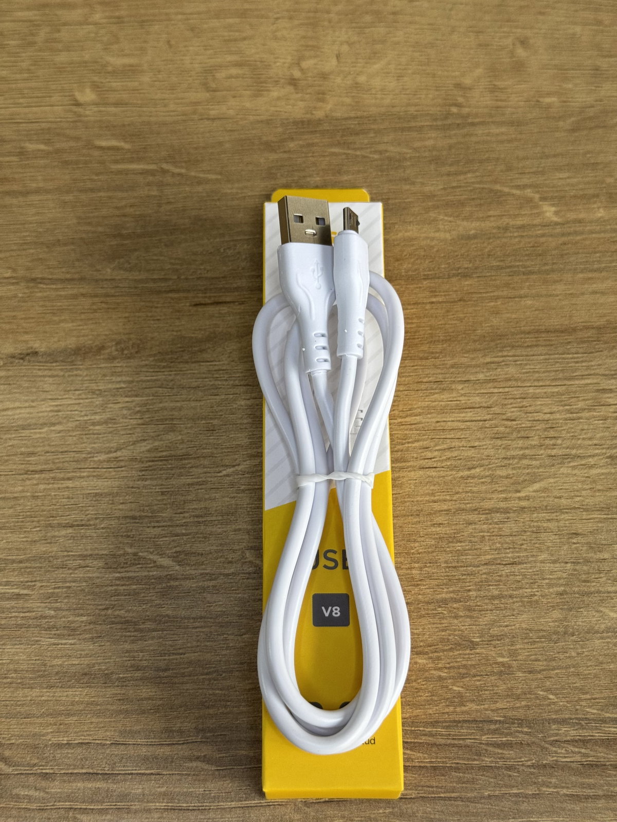 Fabricado con PVC de alta calidad y doble inyección en las puntas, garantiza una mayor resistencia al desgaste. Disponible en color blanco con ficha V8 en PVC, es la opción ideal para quienes buscan calidad y rendimiento. ¡Un básico imprescindible para cualquier dispositivo!