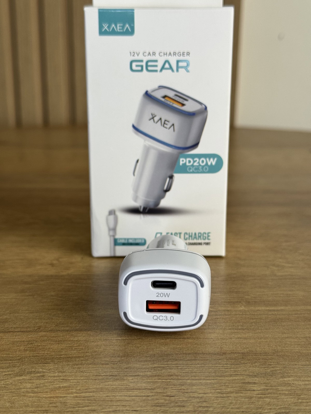 El Cargador de Auto GEAR 12V es la opción ideal para cargar tus dispositivos con rapidez y seguridad mientras conduces. Está equipado con un puerto USB y uno Tipo C para carga simultanea y además incluye un cable USB de tipo C, ofreciéndote versatilidad para conectar diferentes dispositivos sin complicaciones.