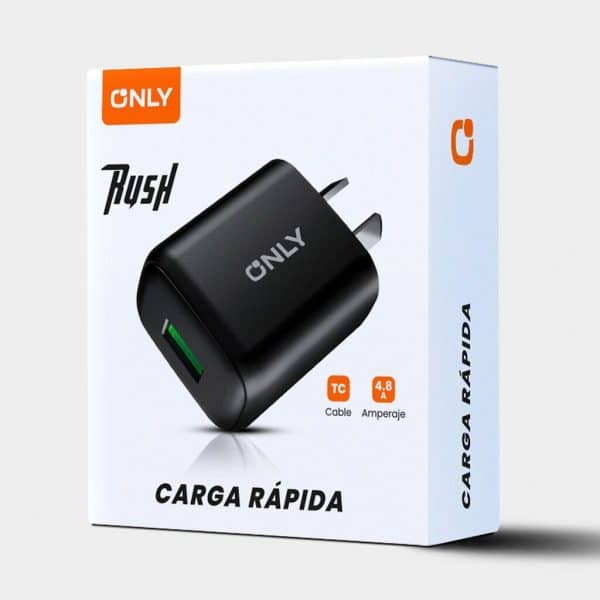 El Cargador RUSH es la elección ideal para tus clientes que buscan una carga rápida y confiable. Diseñado con material ABS, ofrece resistencia y durabilidad para un uso prolongado.