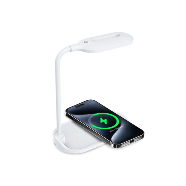 La GLOWIX combina lo mejor de dos mundos: una lámpara de escritorio elegante y moderna, y un cargador inalámbrico magnético con carga rápida de hasta 15W, ideal para mantener tu smartphone siempre listo mientras trabajás, estudiás o descansás.